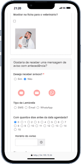 Defina lembretes por e-mail, SMS ou WhatsApp.