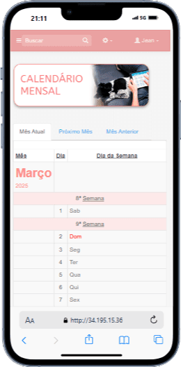 PerĂodos de cio, vermifugação, vacinas, medicamentos, tosa, etc.