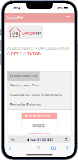 Quais as empresas envolvidas na prestação dos serviços oferecidos pelo LarcomPet?